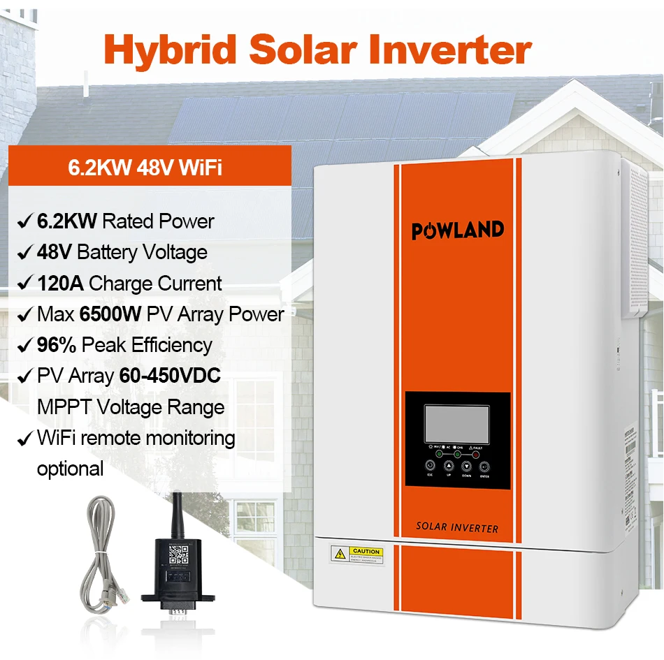 Це багатофункціональний інвертор/зарядний пристрій, що поєднує в собі функції інвертора, сонячного зарядного пристрою MPPT та зарядного пристрою для акумуляторів, що забезпечує безперебійне живлення в портативному розмірі. Його комплексний РК-дисплей пропонує налаштовувані користувачем та легкодоступні кнопки керування, такі як струм зарядки акумулятора, пріоритет зарядного пристрою змінного струму/сонячної енергії, напруга зарядки/відключення акумулятора, прийнятна вхідна напруга залежно від різних застосувань тощо.