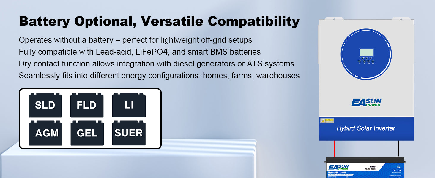 Розумна комунікація (BMS): Вбудований порт для зв'язку з літієвими акумуляторами (LiFePO4) забезпечує ідеальний цикл зарядки та подовжує термін служби батарей.