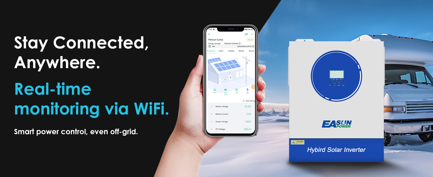 Дистанційний моніторинг: Завдяки вбудованому Wi-Fi модулю ви можете контролювати параметри системи та споживання через мобільний додаток у реальному часі.